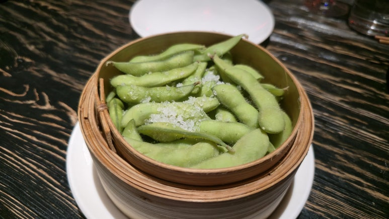 - Classic Edamame (풋콩 찜): 바다 소금 플레이크를 뿌려 찜기에 담아내는 정석적인 풋콩 찜입니다. (비건 메뉴)