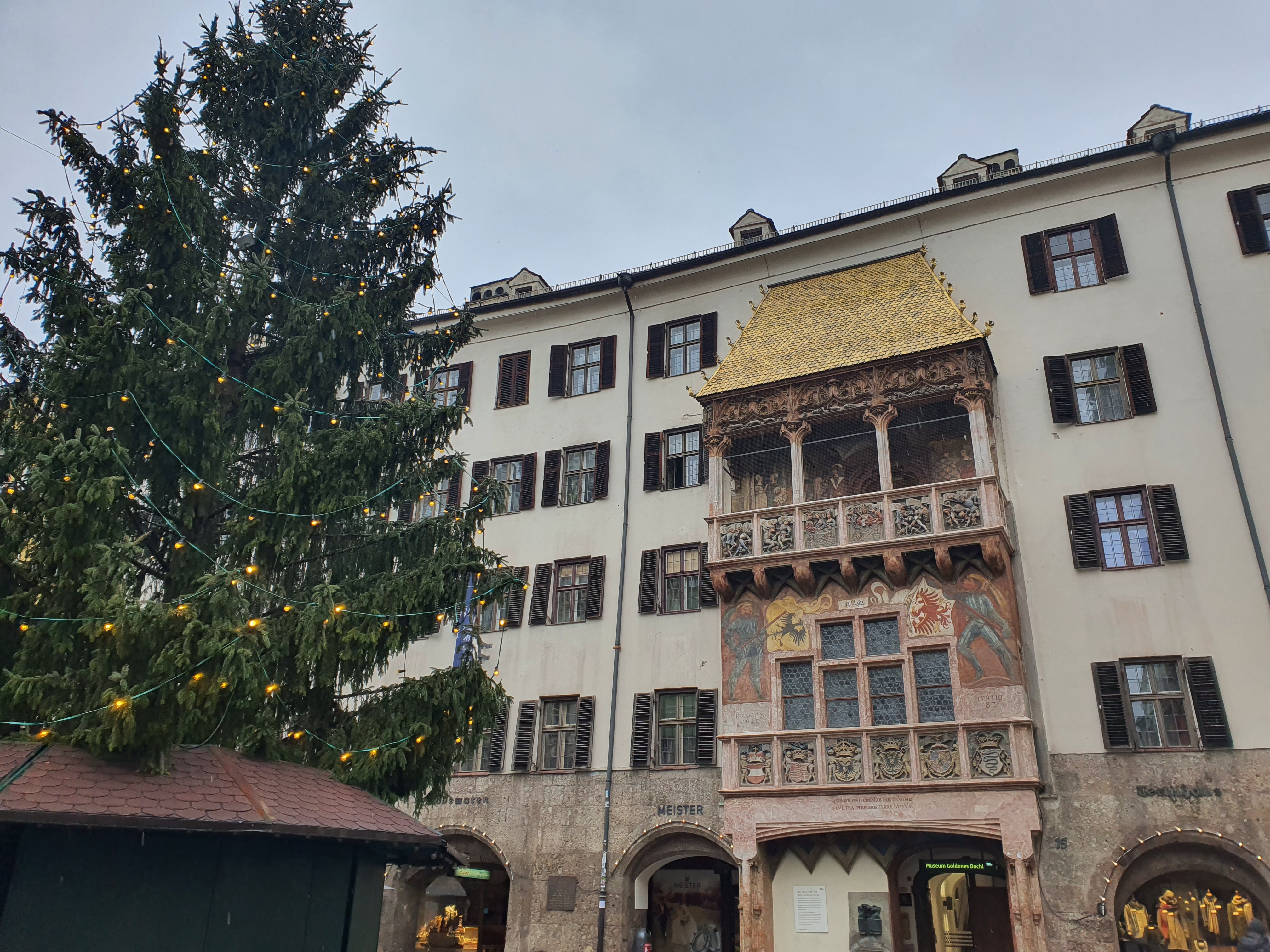 - 황금 지붕 (Goldenes Dachl): 인스부르크의 상징이자 가장 유명한 관광 명소 중 하나입니다. 이 건물은 1500년경 황제 막시밀리안 1세를 위해 건설되었으며, 특히 그의 세 번째 결혼식을 기념하기 위해 황금처럼 빛나는 2,738개의 구리 타일로 지붕이 만들어졌습니다. 이 건물 앞의 광장에서는 종종 시장이나 행사가 열리기도 합니다.