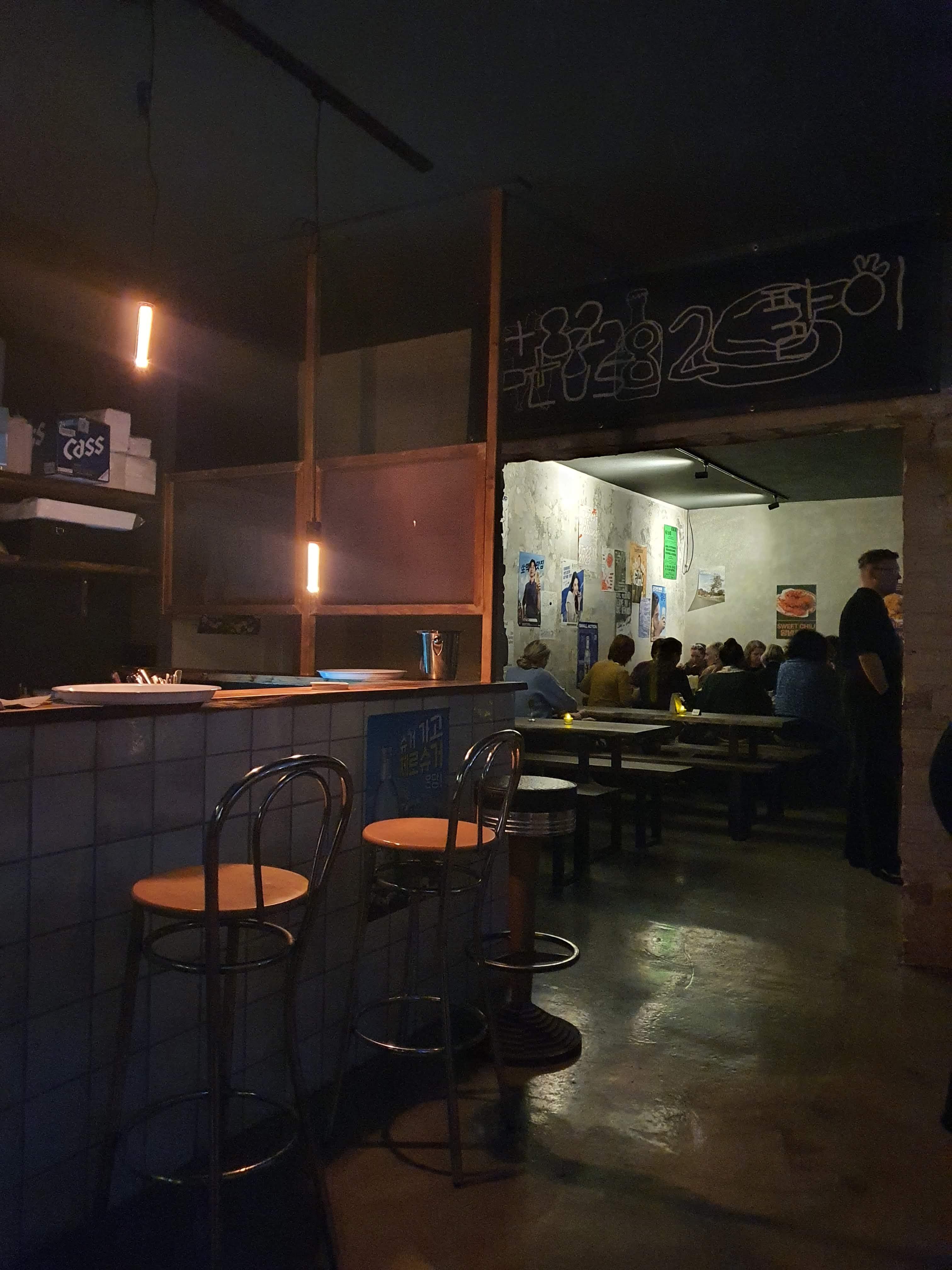 내부는 긴 테이블 좌석으로 구성되어 있어 친구들 또는 모임으로 방문하기 좋으며, 바깥쪽에는 바 테이블이 마련되어 있어 혼자나 두 사람이서 간단히 술을 즐기기에도 적합합니다. 공간이 그리 넓지 않아 미리 예약을 하는 것을 권장드립니다. 특히 술집 컨셉이 강하기 때문에 자리가 쉽게 나오지 않을 수 있으니 이 점 또한 유념해 주세요.