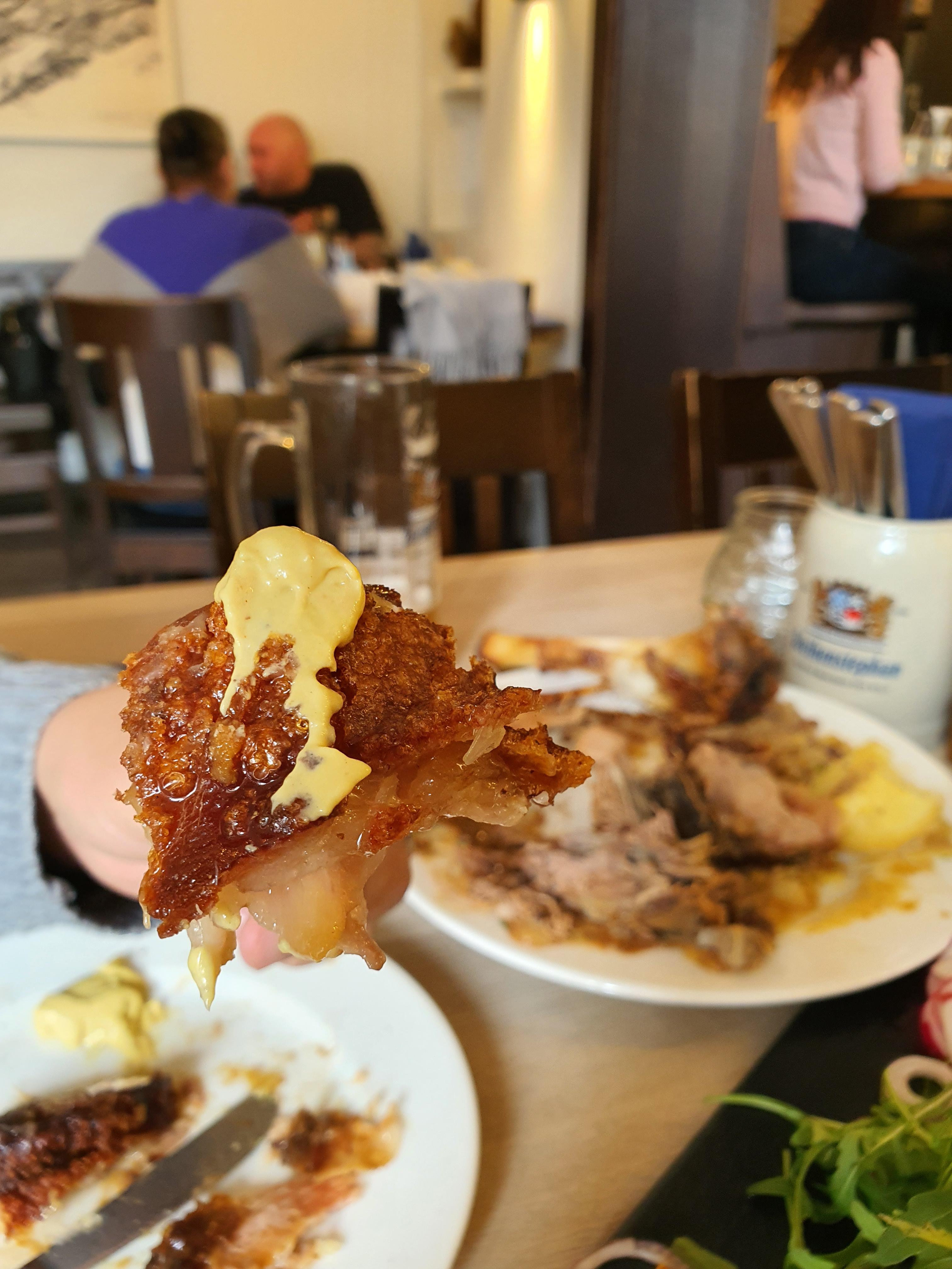 우선 성시경과 신동엽도 반한 메뉴 학센입니다. 이 메뉴를 표현하자면 '겉바속촉' 이게 모든 것을 다 담고 있다고 자신있게 말할 수 있습니다. 과자처럼 부서지는 정말 바삭바삭한 껍질과 오븐에서 오랜 시간 구어진 야들야들한 속살이 너무나도 환상적입니다. 여기에 머스타드 소스를 살짝 찍어 드시면 느끼함도 잡아주며 너무 좋아요.