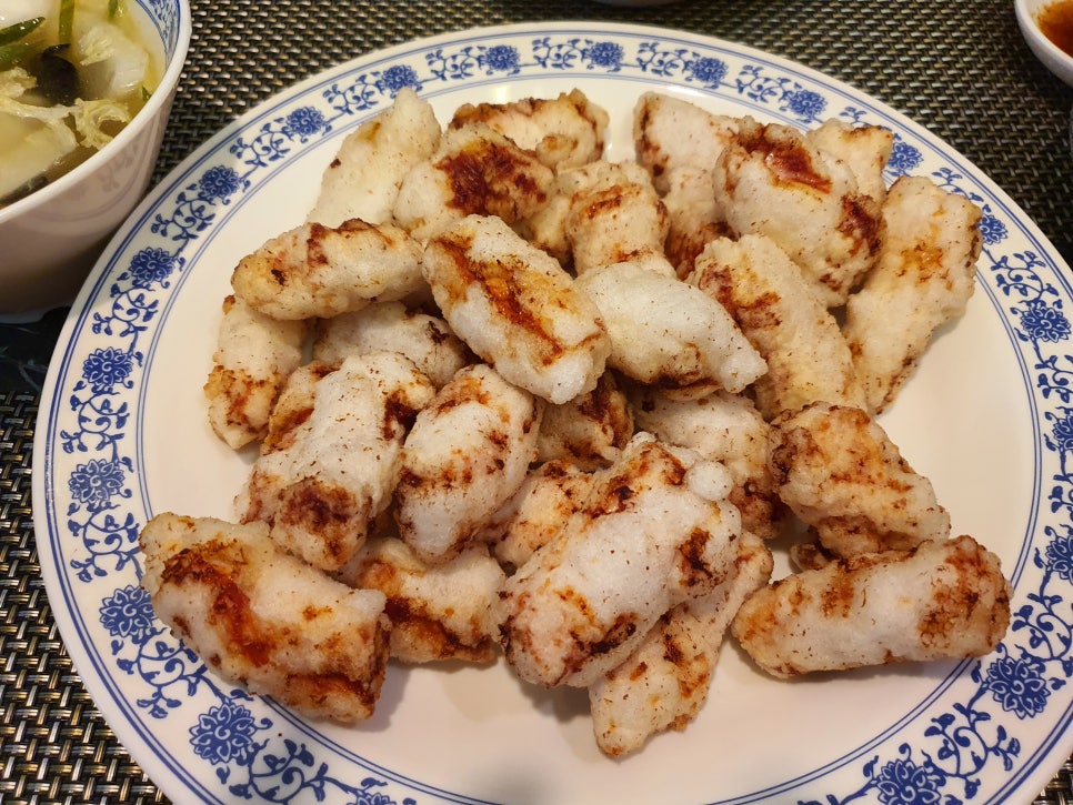 탕수육은 찹쌀 탕수육입니다. 개인적으로는 일반 탕수육의 바삭함을 더 좋아하지만, 프라하의 '주방'에서 먹는 찹쌀 탕수육도 정말 잘 튀겨져 있어 맛있습니다.