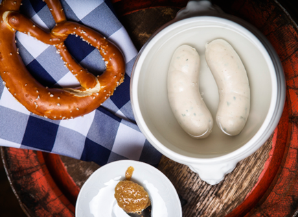 아우구스티너 켈러에서 빼놓을 수 없는 또 다른 즐거움은 바로 바이스부어스트입니다. 바이스부어스트는 하얀색을 띄는 소시지로, 주로 송아지고기와 돼지고기로 만들어집니다. 신선한 소시지를 소금물에 끓여낸 후, 달콤한 머스타드와 함께 먹는 것이 전통적인 방법입니다. 바이스부어스트의 부드럽고 풍부한 맛은 아우구스티너 맥주와 환상적인 조화를 이룹니다. 바이스부어스트는 저녁때 주문하실 수가 없습니다. 레스토랑 문이 여는 점심때 가셔야만 드실 수 있습니다.