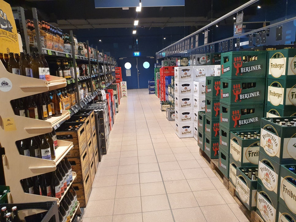 이제 계산대로 나가기 전에 보이는 것이 음료와 맥주 코너입니다. Störtebeker맥주는 슈트랄준트(Stralsund)에 있는 양조장에서 만들어진 맥주입니다. 독일 북부 지방에 몇 안되는 제가 좋아하는 양조장 중 하나입니다. 다른 맥주보다 조금 더 비씨간 합니다만 그럴만한 가치를 가지고 있답니다.