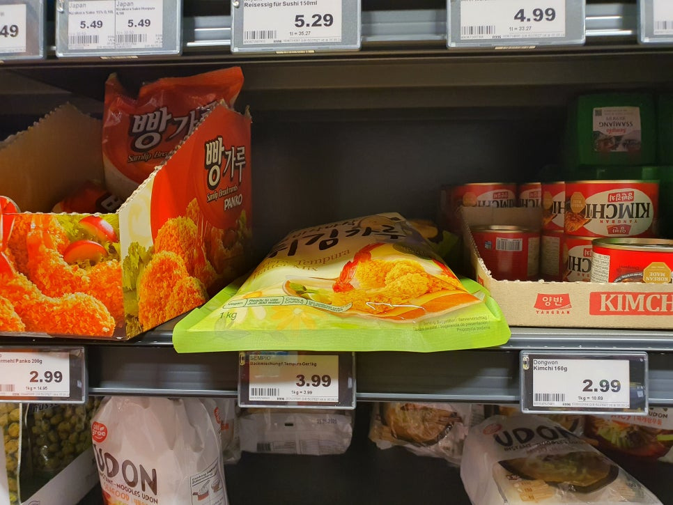 에데카는 카우프란트보다 한국 제품을 더욱 쉽게 찾을 수 있어요. 아시아마트에서 파는 것보다 비싸긴 합니다만 급할 땐 이용할만해요. 저희 동네에도 같은 제품들이 들어오는데 갑자기 쌈장이 떨어졌다 이러면 베를린까지 나가긴 쉽지 않으니 에데카를 이용하기도 한답니다.