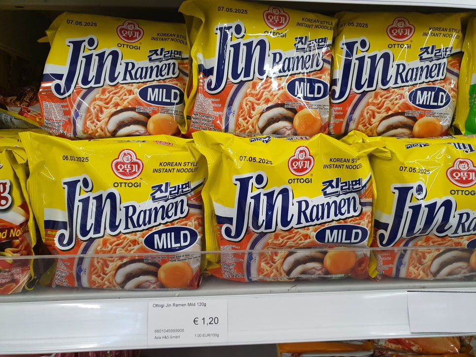 진라면은 1.2유로예요. 가장 저렴하기도 하고 기본이라 가장 많이 이용하는 라면입니다.