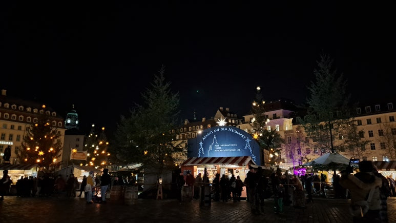 알트마크트(Altmarkt)에서 길을 건너 프라우엔 교회(Frauenkirche) 방향으로 가면 노이마크트(Neumarkt)가 나옵니다. 이곳에서도 크리스마스 마켓이 열리고 있어요. 옛날보단 규모가 조금 줄어든 듯하지만 그래도 많은 상점들이 문을 열었어요.
