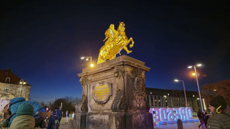 구도심에서 엘베강 다리를 건너면 금빛으로 빛나는 아우구스트 2세의 조각상을 만나실 수가 있어요.