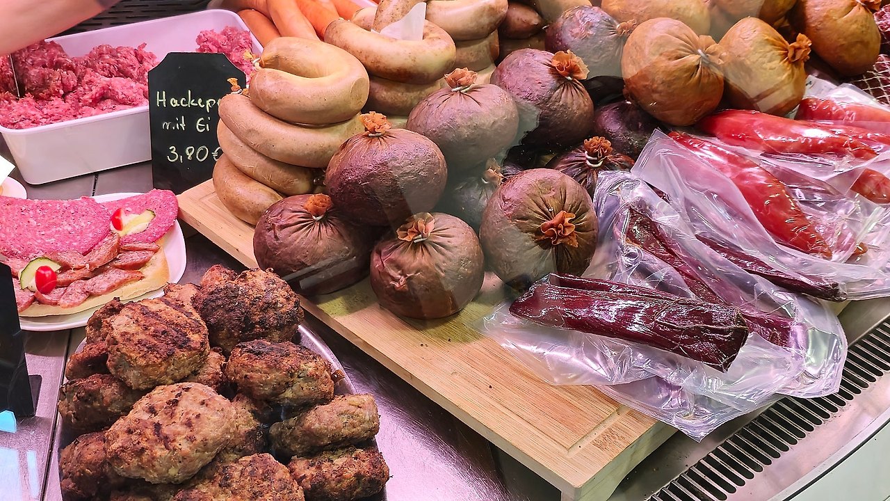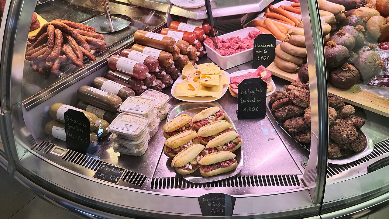 이 곳은 단순히 식당이라기보다 여러 고기로 만든 다양한 음식들을 이렇게 팔고 있어요. 소세지뿐만 아니라 다른 것들도 정말 먹음직스러웠습니다. 게다가 마트보다도 훨씬 저렴한 가격에 구매를 할 수가 있어요.