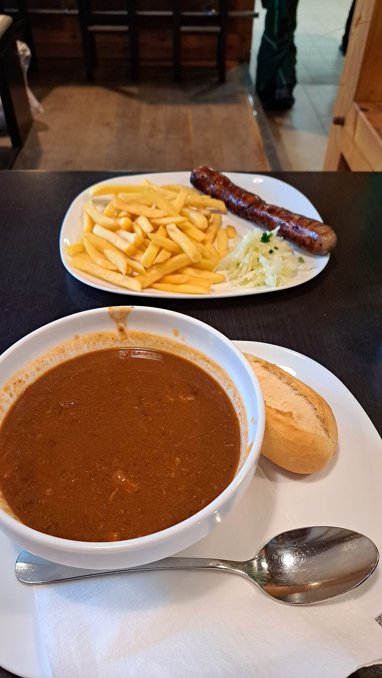 고기가 듬뿍 들어간 굴라쉬는 3.9유로예요. 저렇게 두 개를 시켰는데도 10유로가 안되는 놀라운 가격인데 맛 또한 정말 훌륭합니다. 왜 평점 4.8인지 느끼실 수 있을겁니다.