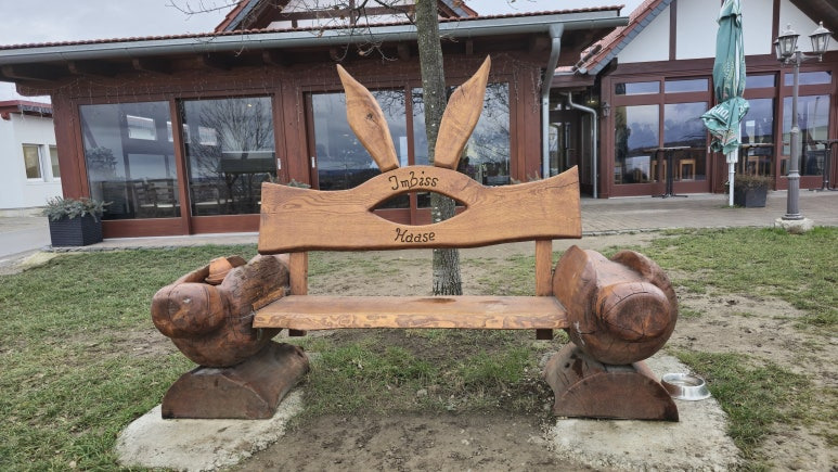 가게 앞에는 이렇게 토끼 귀를 가진 귀여운 벤치가 있네요. 독일어로 토끼는 Hase입니다. 발음이 Haase랑 매우 비슷하죠. 하제, 하-제 로 단음과 장음의 차이일뿐이지요. 그래서 가게에서 이렇게 토끼를 컨셉으로 벤치를 만들어 둔 듯 합니다.