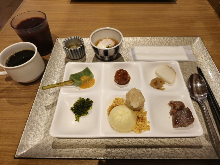 평소 아침을 거르는 편이더라도, 료칸에서의 조식만은 놓치지 않는 분들이 많으시죠. 카덴쇼의 조식 메뉴는 일본 가정식 느낌이 강해, 여러 종류를 맛보며 든든하게 배를 채울 수 있습니다. 생선구이나 일본식 오믈렛도 꽤 인기가 많았고, 유럽식 메뉴는 맛보기처럼 살짝 곁들여진 정도라 부담 없이 함께 즐길 수 있었습니다.