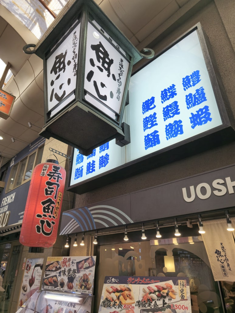 오사카 여행에서 빼놓을 수 없는 미식 경험 중 하나는 바로 초밥입니다. 이번에 방문한 우메다 우오신(UOSHIN) 초밥집은 합리적인 가격에 신선하고 퀄리티 높은 스시를 맛볼 수 있어 정말 만족스러웠어요. 깔끔한 오픈 주방, 편리한 QR코드 주문 시스템, 그리고 가성비 뛰어난 점심 특선까지 모든 것이 완벽한 식사 시간이었습니다.