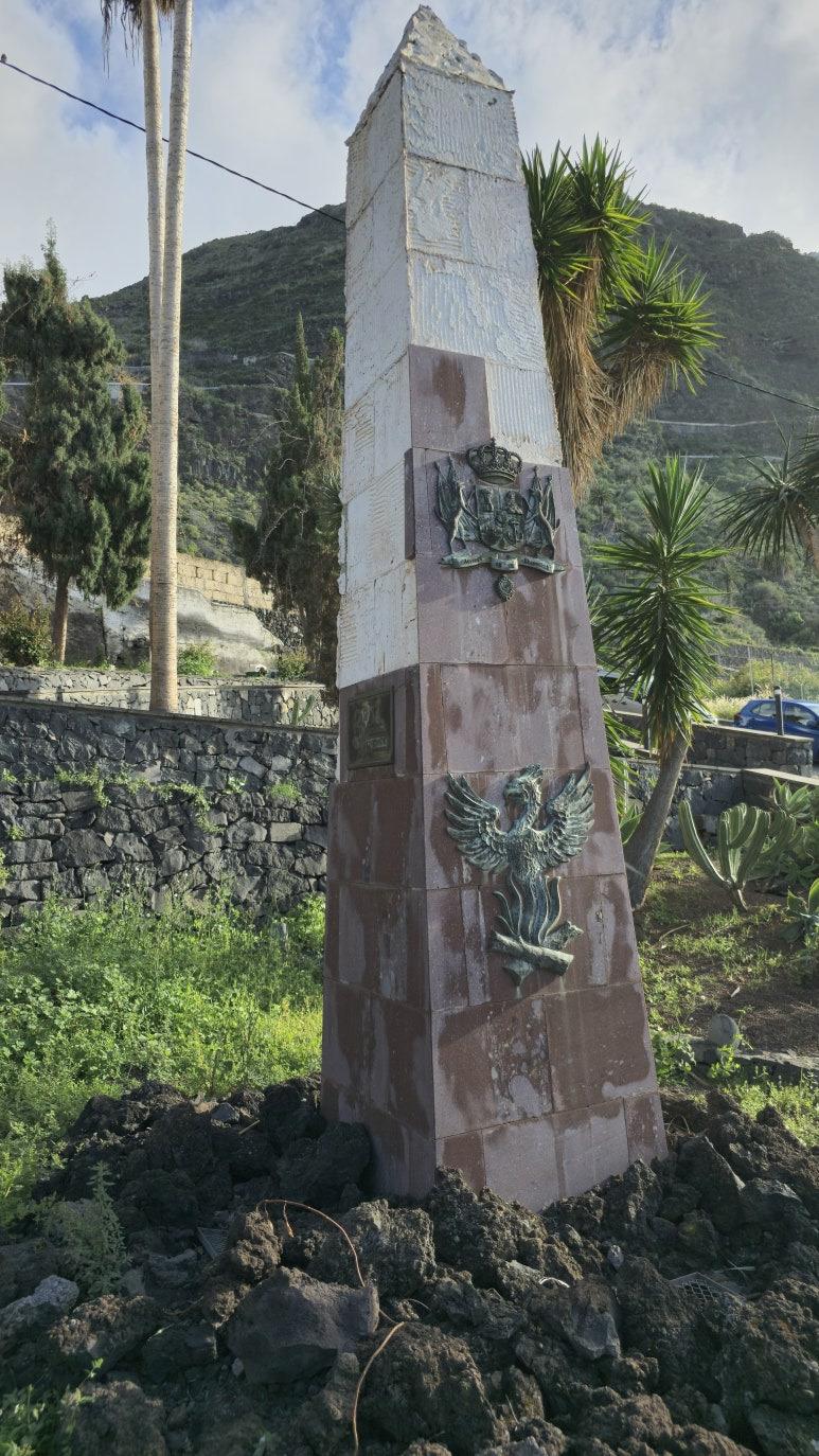 이곳 전망대로 올라가는 길 한편에는 공원과 기념비가 조성되어 있었어요. 1706년에 테네리페에서 화산이 폭발해 용암이 마을 한쪽을 덮쳐서 바다로 흘러내렸었다 합니다. 그때를 추모하기 위해 비석을 세우고 작은 공원을 조성해 놨습니다.