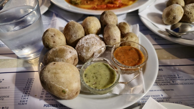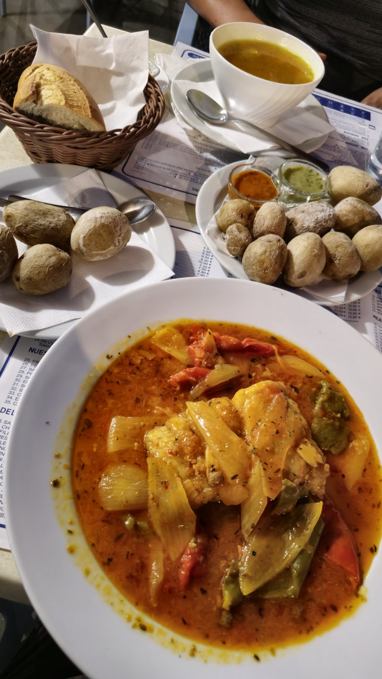 저녁은 항구 근처의 식당에서 먹었습니다. 신선한 해산물 요리, 그리고 삶은 감자 파파스 아루가다스(Papas Arrugadas)와 모호소스(Mojo sauce)는 빠질 수 없는 조합이죠.