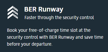 BER Runway는 사전에 예약하면 지정된 시간대에 보안 검사대를 빠르게 통과할 수 있도록 도와주는 시스템입니다. 초창기에는 유료로 운영되었으나, 이용객들의 강한 불만과 공항 운영 미숙에 대한 지적을 반영해 현재는 무료로 제공되고 있습니다.