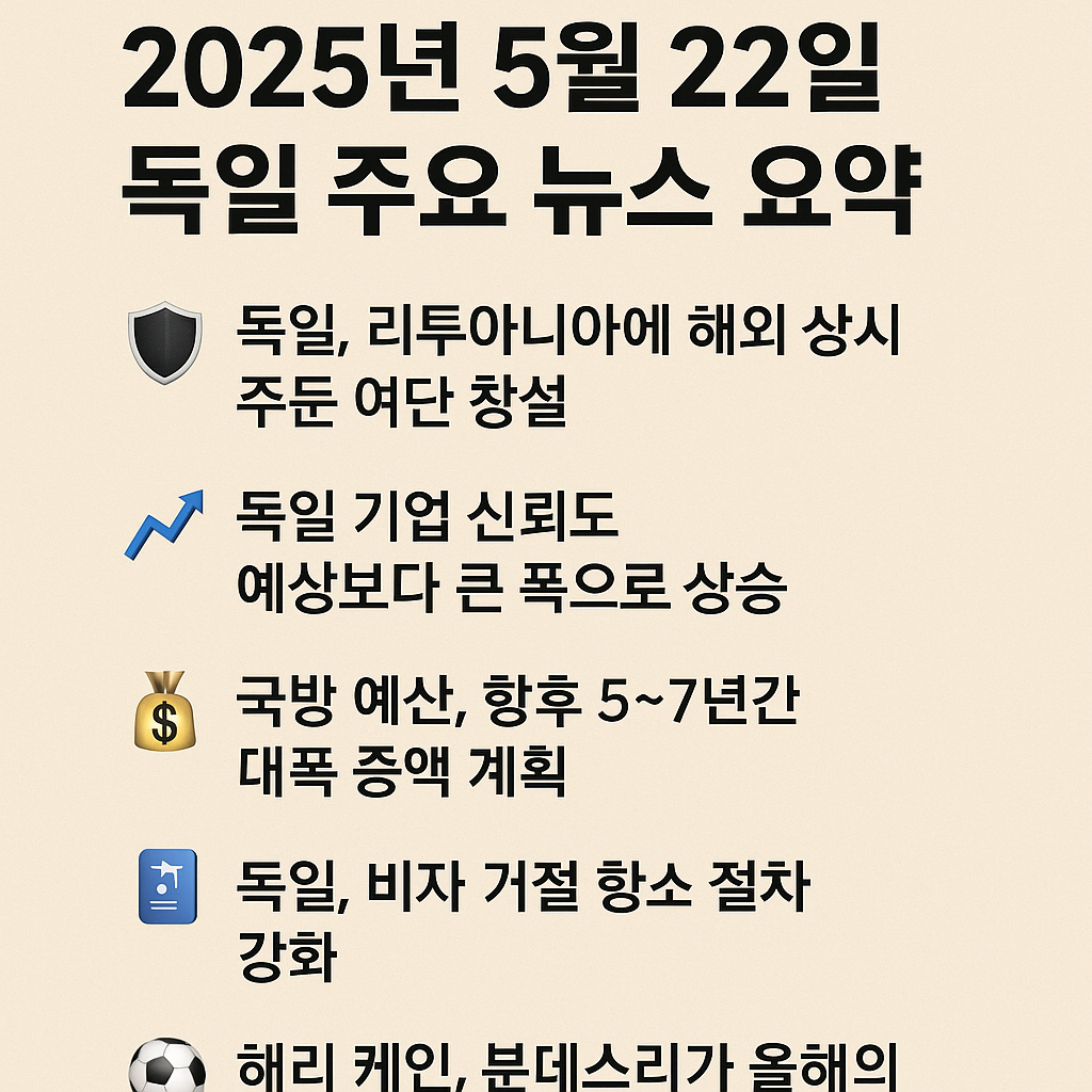 #독일뉴스 #국방강화 #경제회복 #외교정책 #리투아니아주둔 #기업신뢰도 #비자정책 #해리케인 #분데스리가