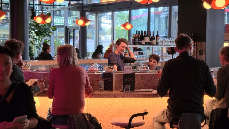 포츠다머 플라츠에는 이미 대형 푸드코트 Manifesto Market이 자리 잡고 있습니다. 이에 비해 KERB는 규모는 작지만, 훨씬 모던하고 세련된 인테리어와 독립된 브랜드 콘셉트로 차별화를 꾀하고 있습니다.