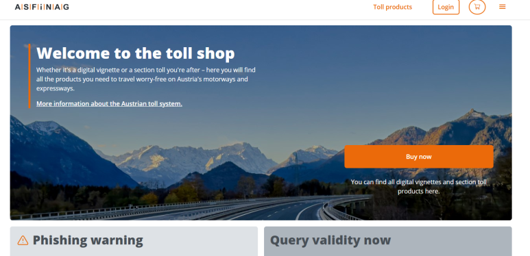 ✅ 1. ASFiNAG 공식 웹사이트에서 구매 (영문 지원)