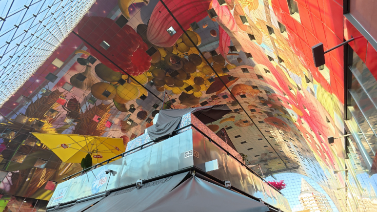 저녁 식당을 찾던 중 눈에 익은 이름을 발견했는데, 바로 타쿠미 라멘(Takumi Ramen). 독일 뒤셀도르프 본점에서 맛있게 먹었던 곳이라 반가운 마음에 바로 들어갔습니다. 위치는 로테르담 명소 중 하나인 마르크트할(Markthal) 안쪽에 있었는데, 건물 자체가 엄청나게 독특해 다큐멘터리 하늘에서 본 유럽(Europe From Above) 에도 나온 곳이었어요. 시장은 마감 시간이 다 되어 둘러보진 못했지만, 다음날 제대로 다시 오기로 했습니다.