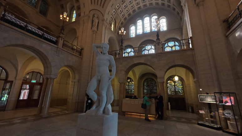 아침 공기를 쐬며 혼자 돌아다녔던 것 말고 드디어 본격적으로 하루를 시작해 보려 합니다. 어젯밤 오늘 무엇을 해볼까 하며 계획을 세웠었습니다. 우선 첫 번째로 네덜란드 하면 바로 풍차의 나라이니 풍차를 둘러보려 합니다. 여러 지역들에 풍차들이 있기는 하지만 도심에서 가까운 대중교통으로도 편히 다녀 울 수 있는 스키담(Shiedam) 지역을 둘러보기로 했습니다. 하지만 스키담으로 가기 전에 아침에 둘러보았던 시청을 와이프에게 보여주고 싶어 우선 시청으로 향했습니다. 너무나도 인상적이었어서 그냥 지나칠 수가 없었어요. 시청 로비까지는 들어가 보실 수도 있어요.