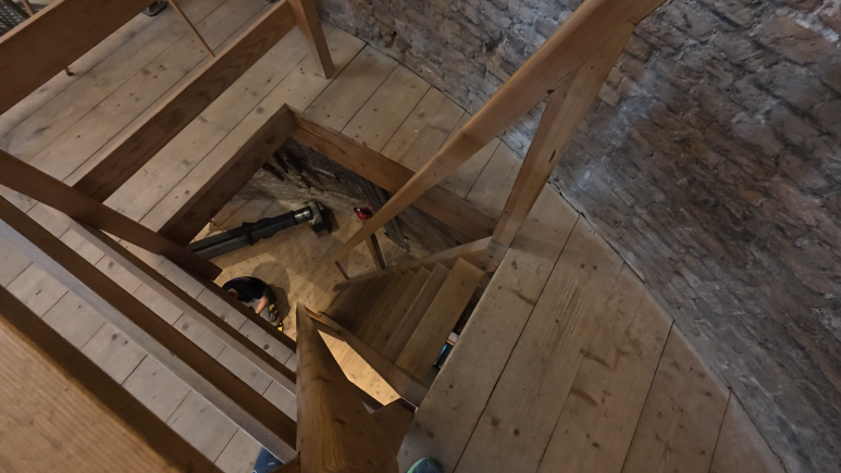영상을 보신 뒤에는 더 올라가려면 가파른 계단을 올라가야 합니다. 좁은 풍차 안이라서 이렇게 계단들이 가파르게 되어 있어요. 느낌으로는 거의 수직 사다리를 올라가는 거 같았습니다. 노약자나 어린이와 함께 가신다면 주의를 하셔야 할 것 같아요. 엘리베이터가 있지는 않습니다. 영상을 상영하는 곳까지는 어렵지 않게 올라가실 수 있지만 위에 전망대 부분까지 올라가시려면 가파른 계단을 두 번 올라가셔야 합니다.