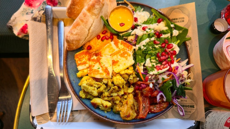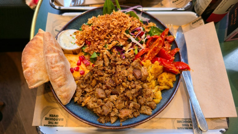 평점도 좋았고 먹기도 간단해보여서 들어갔습니다. 이것저것 원하는대로 플레이트를 구성할 수 있는것 같긴 했습니다만 잘 아는 음식이 아니기에 미리 셋팅된 것 중에서 하나를 골라서 주문을 했지요. 상당히 푸짐하게 잘 나오고 고기와 병아리콩 등 단백질이 듬뿍 담긴 접시였습니다. 너무나도 맛있어서 남김없이 잘 먹었어요.