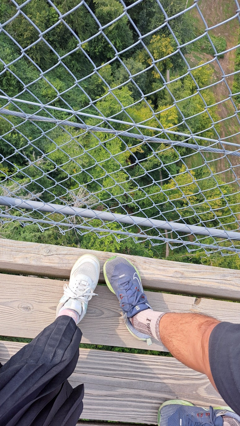 바람이 제법 불어와 스릴을 더해주지만, 걱정할 정도로 크게 흔들리지는 않습니다. 다리 구조가 안정적으로 설계되어 있어 처음엔 두근거리더라도 금세 익숙해집니다. 익숙해지고 나면 오히려 여유롭게 걸으며 양옆으로 펼쳐진 녹음과 탁 트인 풍경을 즐길 수 있는 시간이 됩니다.