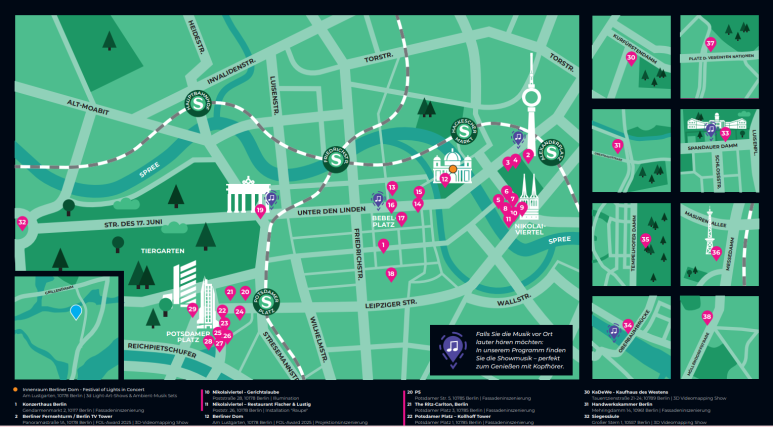 - 특이 사항: 베를린 대성당 내부 FOL in Concert(앰비언트·라이트 쇼)는 유료 티켓 필요(대부분의 야외 작품은 무료)