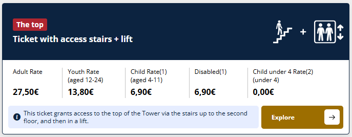 Compre ahora su billete al mejor precio desde 3,60€ hasta 35,30€ - Billetes para el 2º piso o la cima
