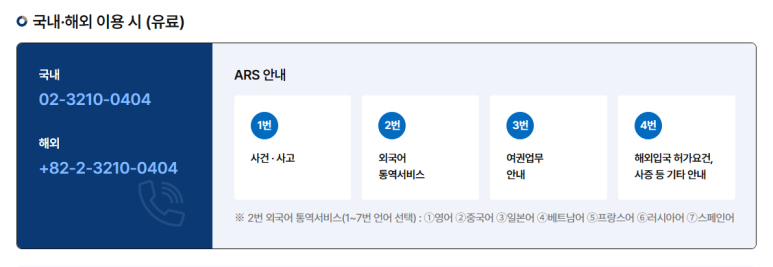 - 해외에서 걸 때: +82-2-3210-0404 (유료)