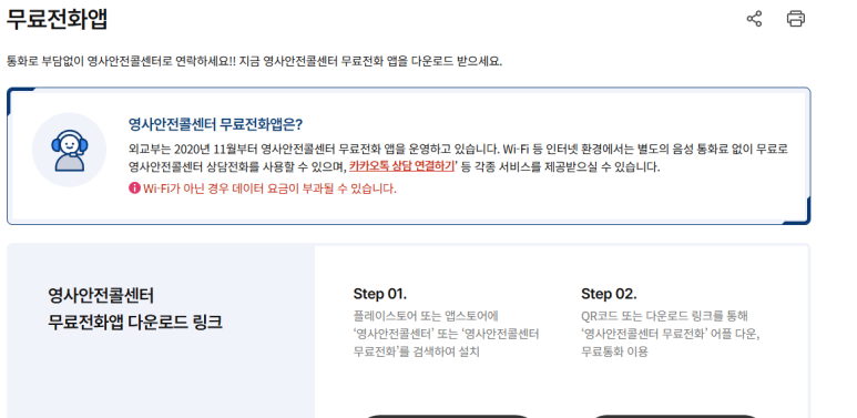 - 스마트폰에 '영사콜센터 무료전화' 앱 설치하기