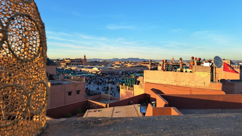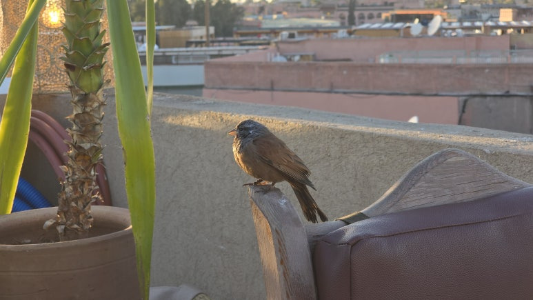 북아프리카의 나라 모로코 마라케시에서 하룻밤을 보냈습니다. 다행히도 난방이 잘 되어서 그리 춥지 않게 잘 수 있었어요. 아침 조식이 포함된 리아드여서 아침을 든든하게 먹을 수 있었습니다. 루프탑에서 맞이하는 아침해와 모코로의 시원한 공기가 참으로 상쾌했었어요. 도로에서 걸어다닐 때는 매연과 먼지가 엄청 났었거든요.