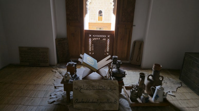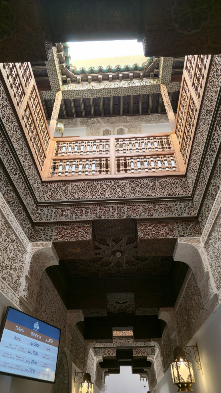 💡 900명의 엘리트가 모였던 당대 최고의 배움터 그저 화려하고 예쁜 유적지 같아 보이지만, 사실 이곳은 16세기 사디안 왕조 시절 재건된 북아프리카 최대 규모의 이슬람 신학교(마드라사)였습니다. 전성기에는 아프리카 전역에서 모여든 900명 이상의 유학생들이 이슬람 법학과 코란을 연구하던 곳이었죠. 1960년대까지도 실제 학교로 쓰였다고 하니, 공간 곳곳에 오랜 학구열의 숨결이 고스란히 배어있는 셈입니다.