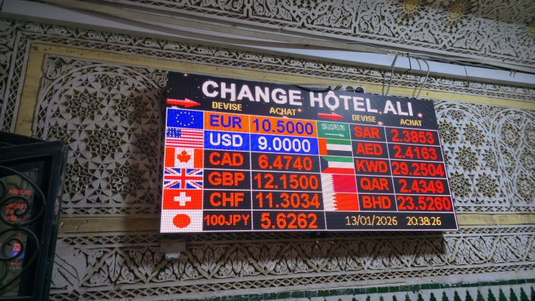 메르주가까지는 꽤 긴 거리를 택시 투어로 이동해야 했는데, 중간중간 휴게소나 식당에서 밥을 먹으려면 현금이 넉넉히 필요하겠더라고요. 그래서 출발 전 환전을 든든하게 해두기로 했습니다. 제가 찾아간 곳은 메디나 중심에 위치한 '알리 호텔(Hotel Ali)'이었어요. 이곳 1층 환전소가 마라케시에서 환율이 가장 좋기로 여행자들 사이에서 소문이 자자하거든요. 직접 환전을 해보니 확실히 공항과 비교했을 때 환율이 훨씬 유리했습니다.