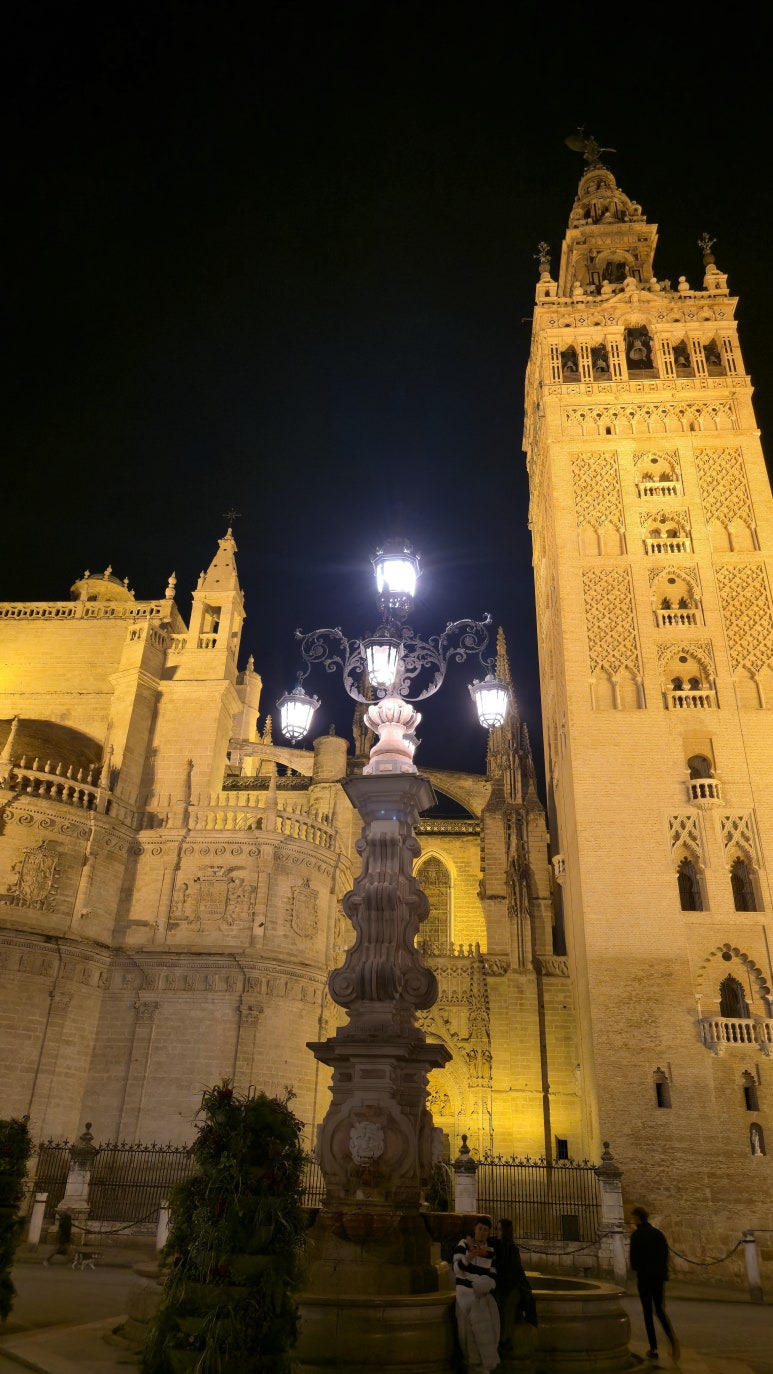 1. 히랄다 탑 (La Giralda) 세비야의 랜드마크인 이 탑은 과거 이슬람 사원의 첨탑(미나렛)이었습니다. 특이하게 계단이 아닌 경사로로 되어 있는데, 이는 과거에 말을 타고 올라가기 위해 설계되었기 때문이에요. 정상에 오르면 오렌지 나무가 가득한 안뜰과 세비야 시내 전경을 한눈에 담을 수 있습니다.
