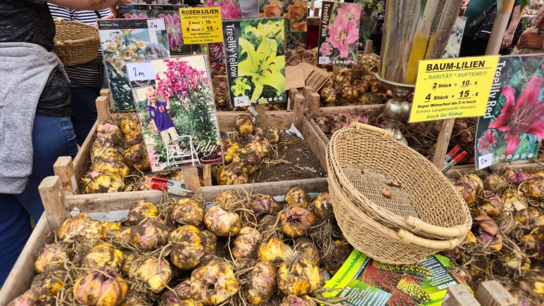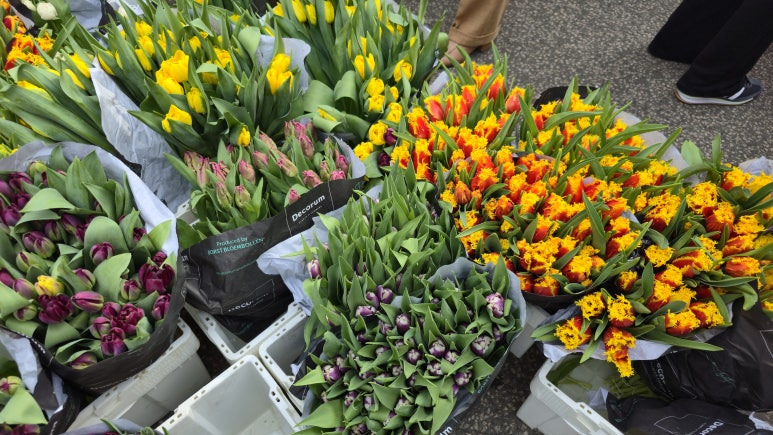 예전 네덜란드 쾨켄호프에 갔을 때도 느꼈지만, 튤립의 세계는 정말 무궁무진한 것 같아요. '이게 정말 튤립 맞나?' 싶을 정도로 화려하고 독특한 모양의 품종들이 시선을 사로잡더라고요. 축제장 안에서는 이런 희귀한 튤립 구근들도 판매하고 있어서 저도 모르게 몇 알 골라 담았습니다. 사실 튤립은 다년생이라 관리만 잘하면 내년에도 꽃을 볼 수 있거든요. 물론 원예용 구근을 매년 건강하게 다시 피워내는 게 쉬운 일은 아니지만, 정성을 다해 심어보려 합니다.
